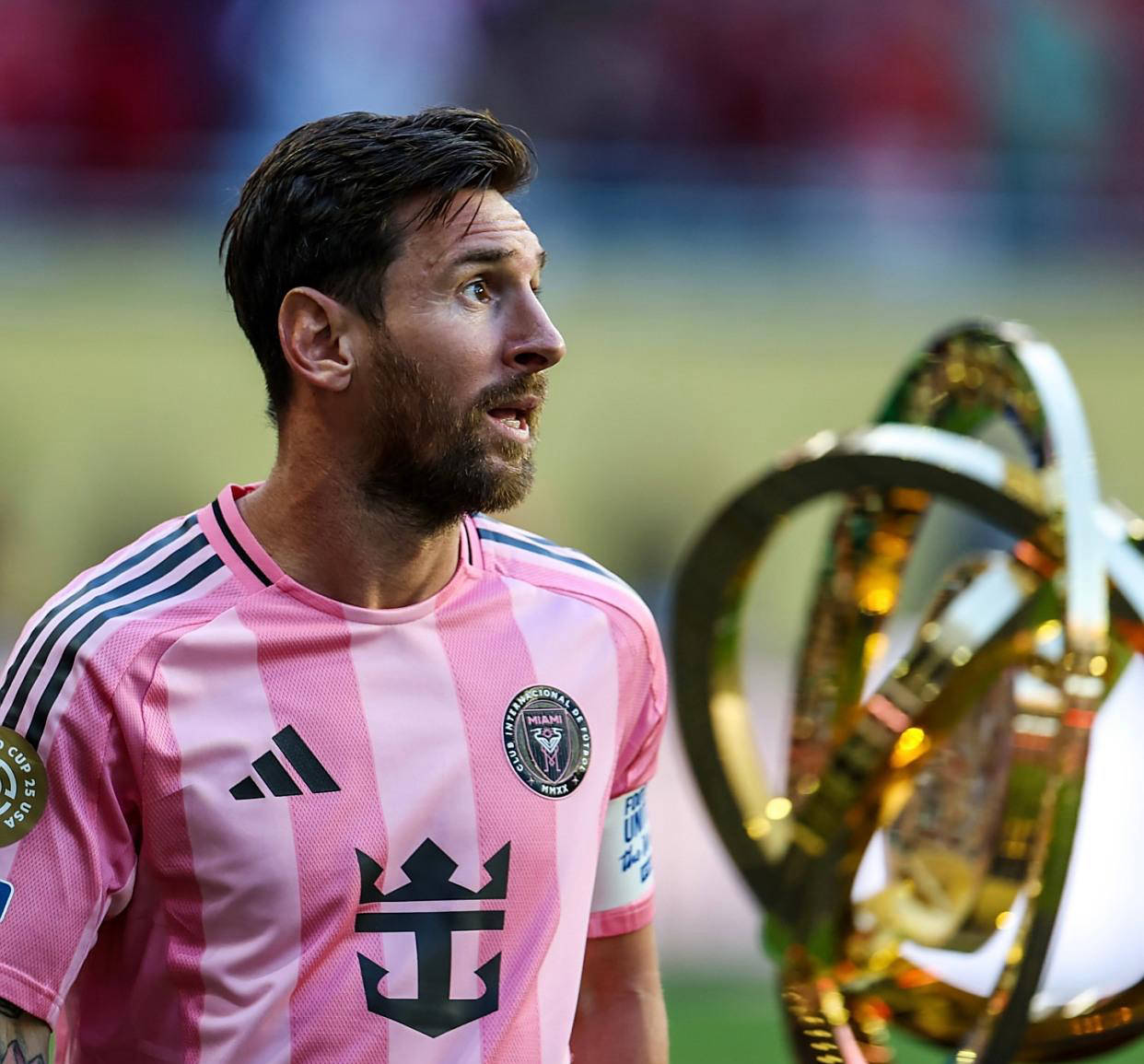 国际足联也不例外,作为其主席的因凡蒂诺最近也通过社交媒体向梅西致敬。因凡蒂诺以世俱杯为背景,祝贺梅西在世界杯和世俱杯均有建树,尤其是这两项赛事均由国际足联组织。他称赞能在世俱杯取得进球的球员是“特别的一群人”,还回顾了梅西在世界杯赛场上的荣耀:世界杯冠军和两座金球奖。此外,因凡蒂诺还提到自己对2022年世界杯的热切期待,并预祝梅西和阿根廷在那里获得好成绩。